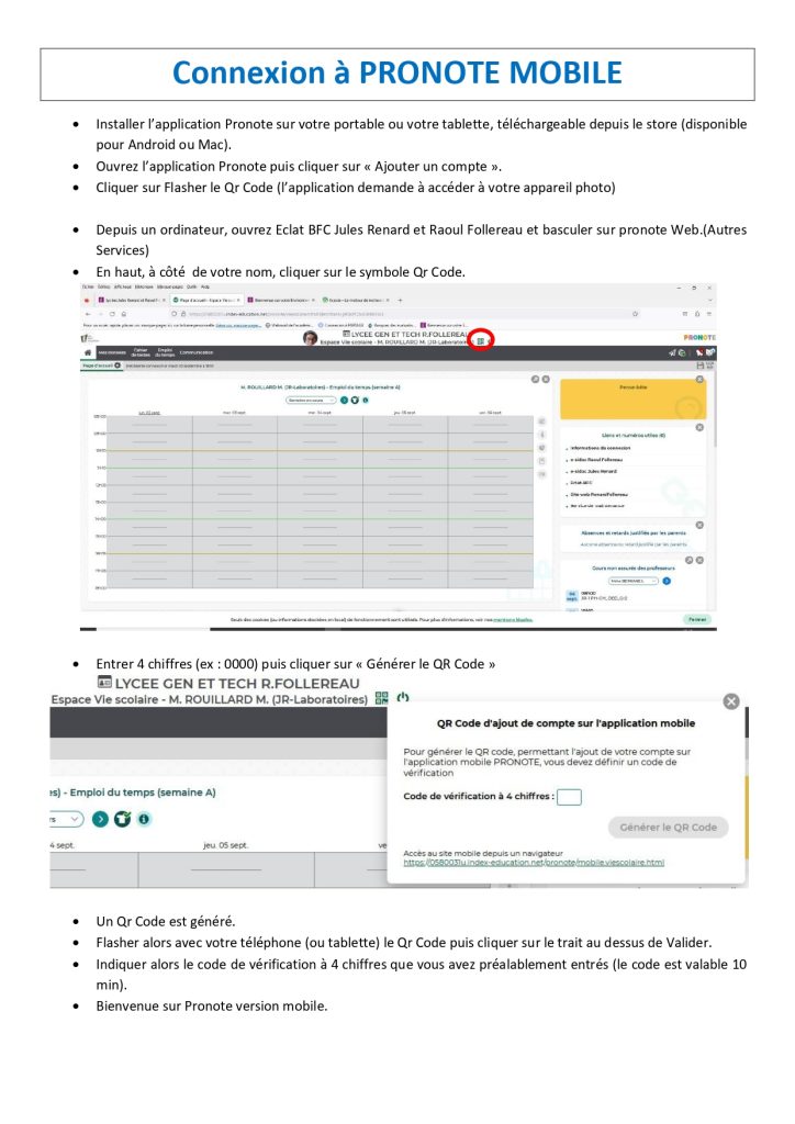 Attention: Lors de la première connexion il vous est demandé de changer le mot de passe (aussi bien avec pronote.net qu’avec le QrCode. Merci de noter ce nouveau mot de passe.